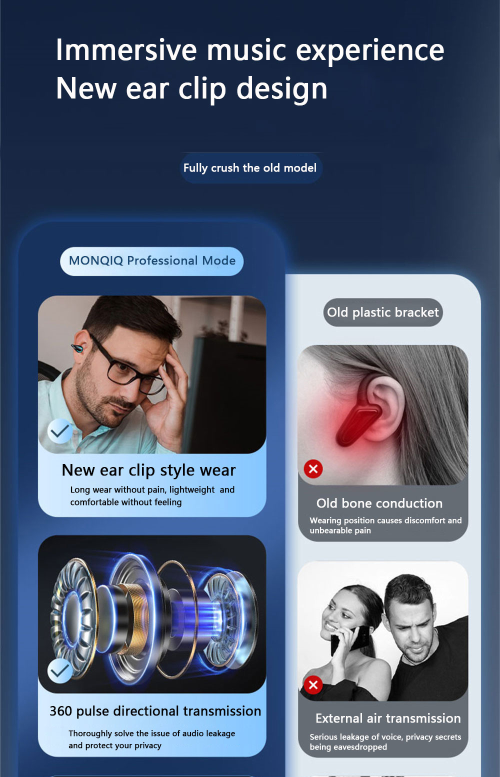 The ear clip design is genius! It's so comfortable, I forget I'm wearing them.