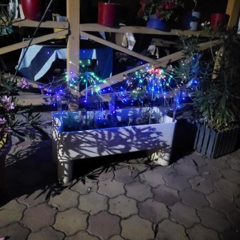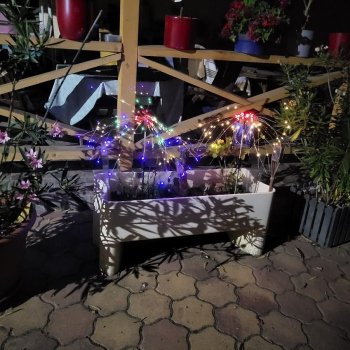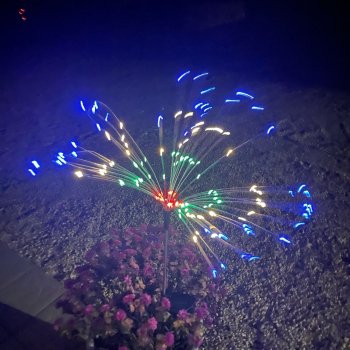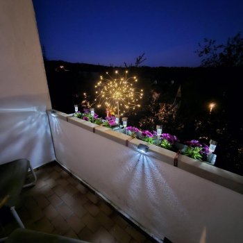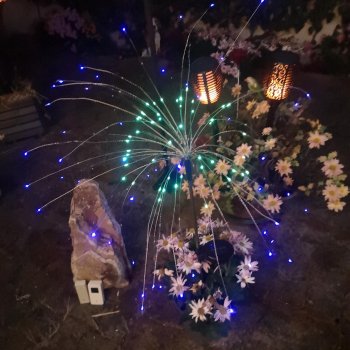 The individual light wires have to be plucked in all directions first, but then it just looks mega great. The colors are really great and it even shines in the morning until it gets light again. So the battery lasts a very long time. I think I'll order another 2 right away.