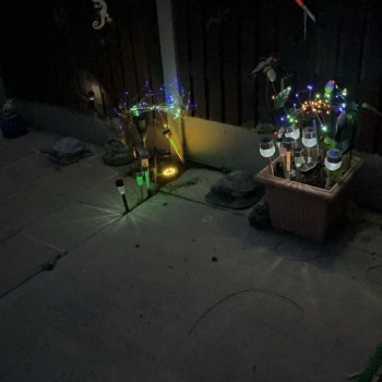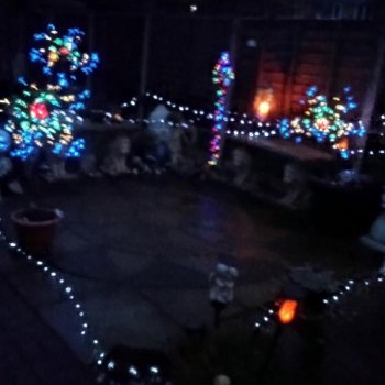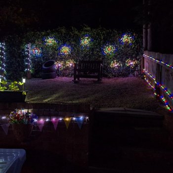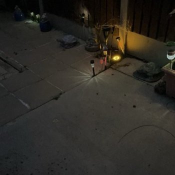 These are gorgeous lights. As you can see, they are very bright. One picture at dusk and the other later, when it was really dark. I would recommend these.